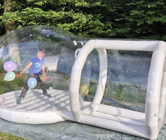 Hüpfburgen gibt es wie Sand am Meer zu mieten, aber dieses Blasenhaus stellt sie alle in den Schatten. Auch hier ist eine Hüpffläche integriert, wie bei einer Hüpfburg auch. Im Inneren befinden sich Luftballons, welche zum Spielen einladen. Wahlweise ist es auch möglich das Blasenhaus mit Schwarzlicht und Neonballons zu leihen, was ein Highlight auf jeder Party im Dunkeln ist. Ideal auch für Hochzeiten zur Beschäftigung der kleinen Gäste oder Junggesellenabschiede wahlweise mit Herzballons.