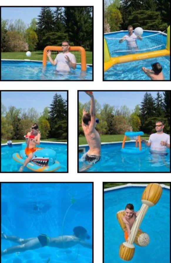 - 2x Jetskischwimmer mit integrierter Wasserpistole (nutzt das Poolwasser zum Spritzen)